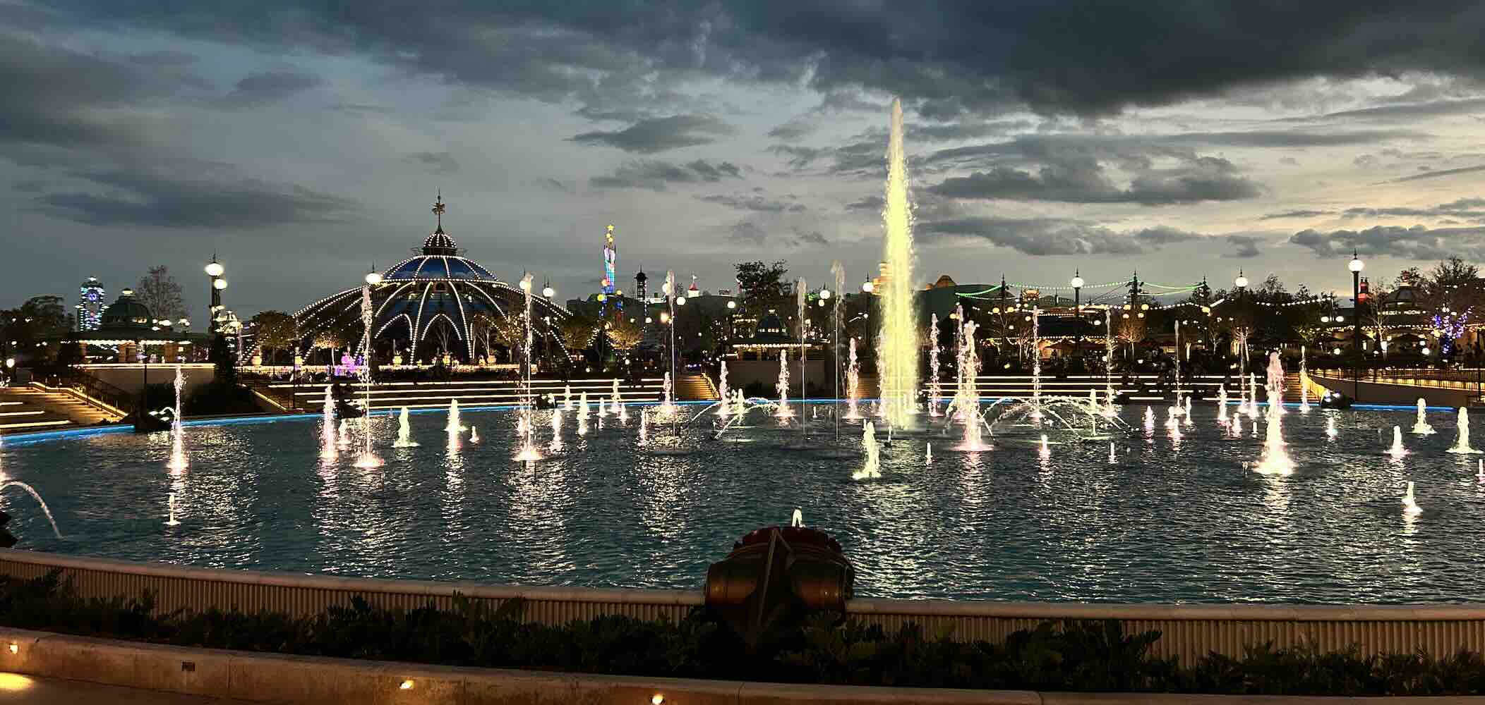 Jae was now heading towards The Wizarding World of Harry Potter – Ministry of Magic, where multiple cups of butterbeer had her name written on them already. At Sandy’s ‘suggestion’, I went over to pay for it. Somehow, I managed to commit to buying a butterbeer for Jae whenever she wants one. At least, that’s how she remembers it, often with a sarcastic glint in her eye. Jae and I have this unspoken rule between us. She tells me what she wants from me, and I deliver. There’s always an undercurrent of humour in these micro-interactions between us. Secretly, it pleases me to see her developing the ability to coax out of me what she needs— even if it’s dressed up as humour. In the meantime, Sandy parked herself at the fountains between the Helios Hotel and Constellation Carousel. Dusk was starting to set in, and the water fountains were dancing, making for a magical and relaxing atmosphere.