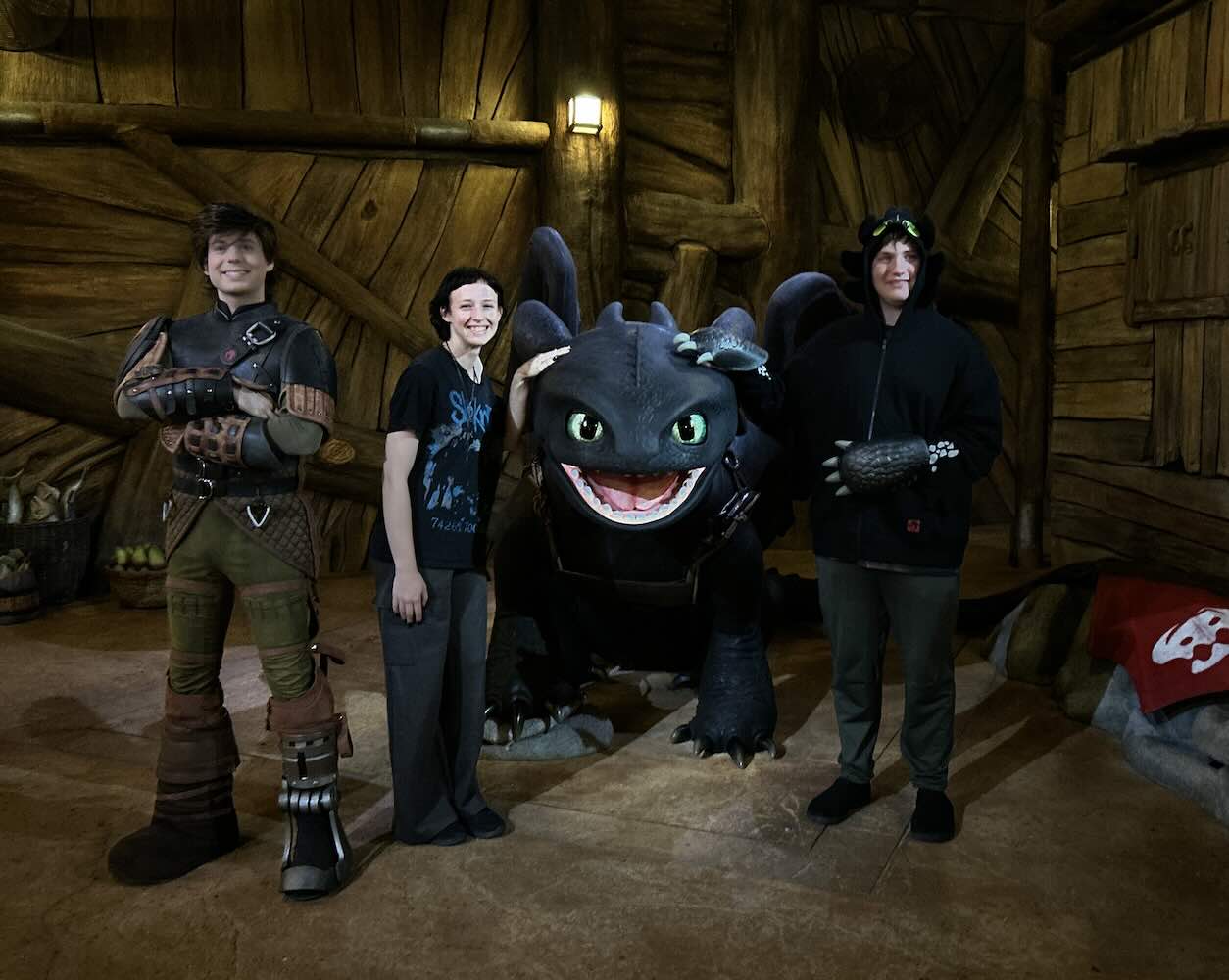 The agreement was we’d all reconvene in Berk for the Untrainable Dragon show. Where Sandy was determined to meet Toothless, I was determined to experience both shows at Epic Universe. I managed the Le Cirque du Arcanus show a few days ago, but we missed out on the dragon show. This time, I was on a mission.