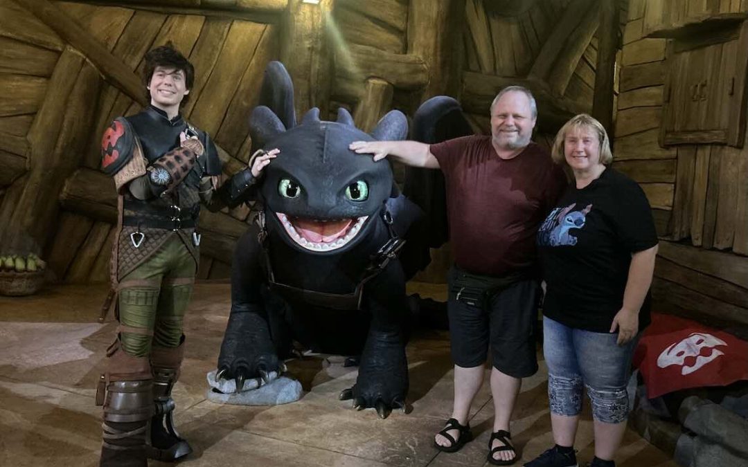 Everyone really enjoyed the Werewolf rollercoaster—including Joey. It was time to go, but Sandy was still holding out hope for the Toothless meet and greet. Frustratingly, the app wasn’t displaying any wait times, so Sandy found a nearby concierge desk to inquire. It was 45 minutes. Sandy felt that it was doable. She said she was heading over there, but that we could go back to the car if we wanted to. This was clearly important to her. I think we all realised that and made our way back to Berk with her. I initially had misgivings as to what this might do to Joey’s disposition. The last thing we needed now was another outburst between Joey and Sandy. I was pleasantly surprised when it became evident he was also keen on meeting Toothless in person.